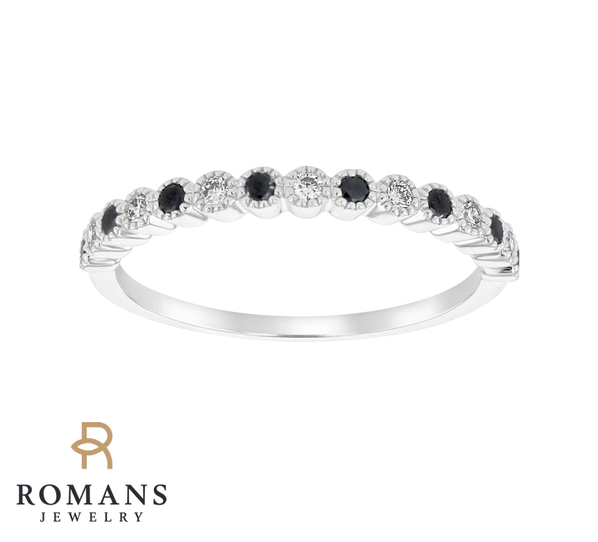 Diamond & Black Diamond Milgrain Band 14K White Gold .25 CTW