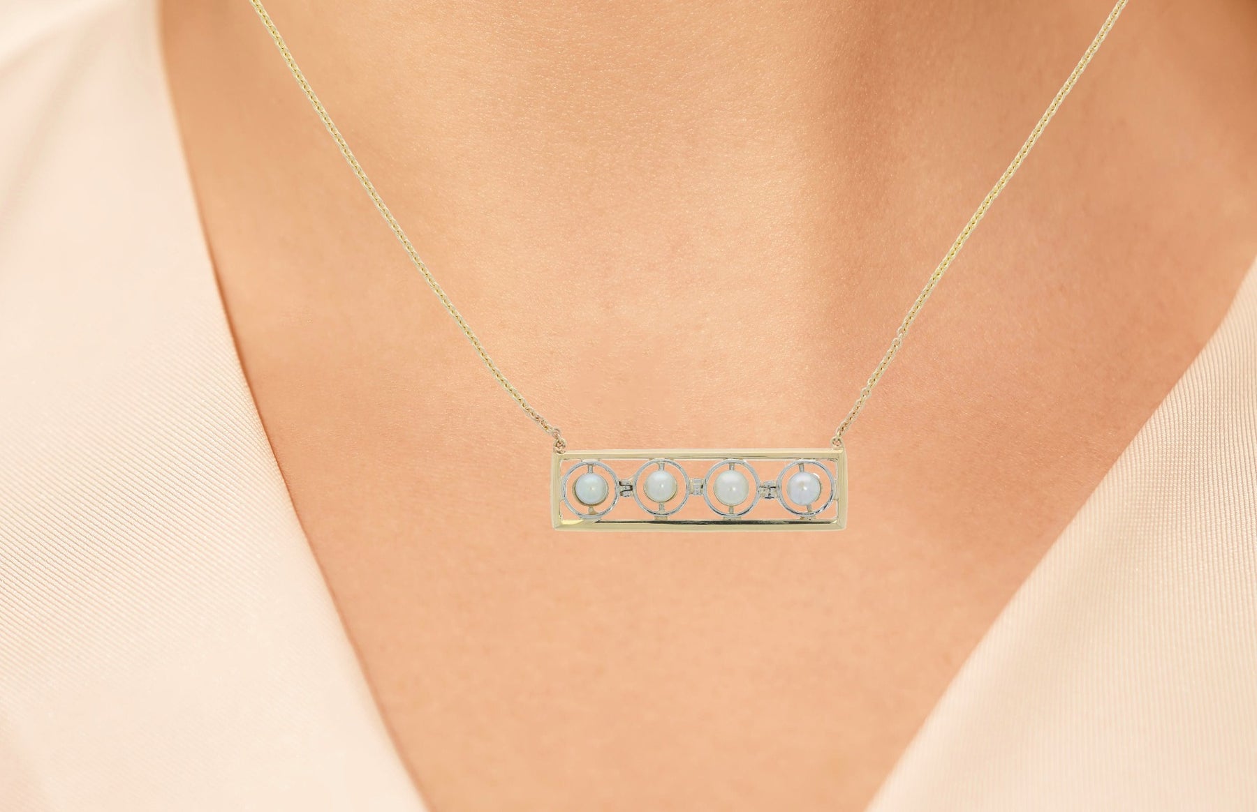 Freshwater Pearl Bar Necklace 14K Two Tone 1950's