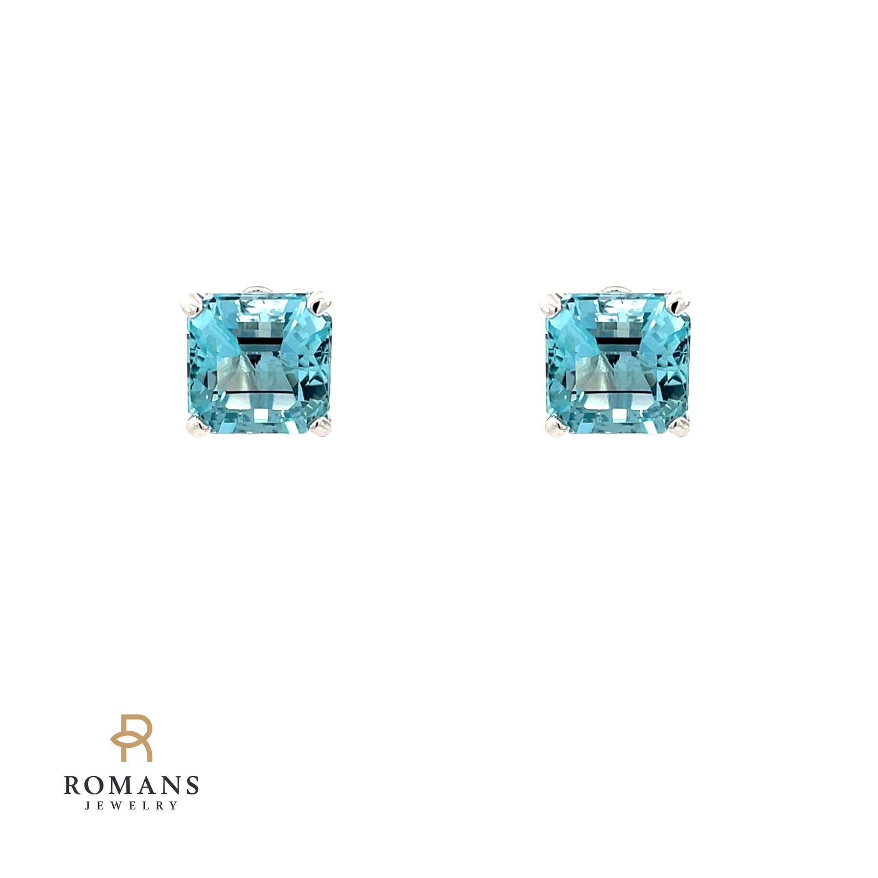 Aquamarine Stud Earrings 14K White Gold 7.18CT