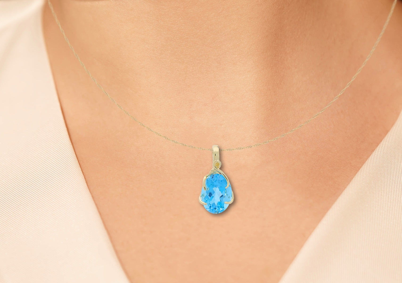 Swiss Blue Topaz Nature Style Pendant 14K Yellow Gold 11CTW