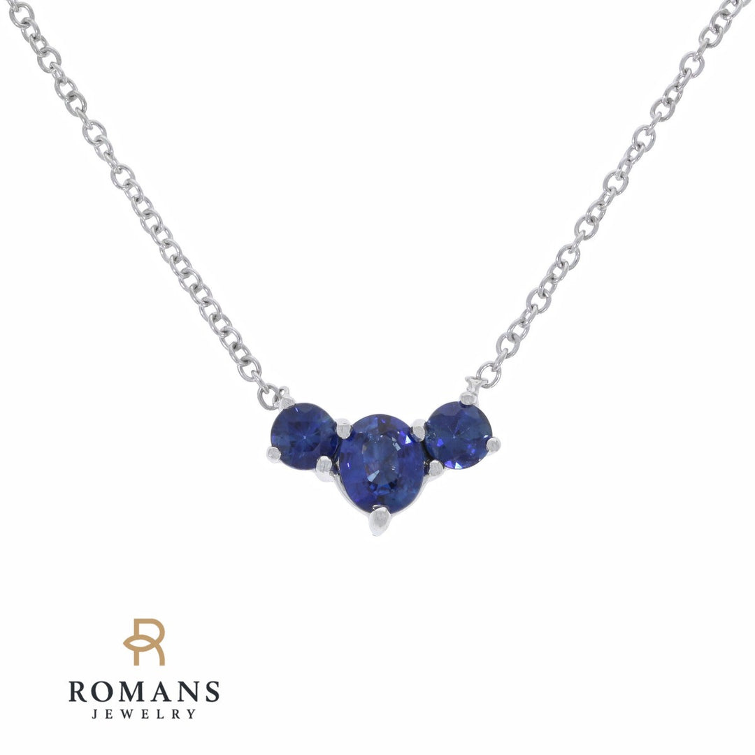 Blue Sapphire Trio Necklace 18K White Gold .92CT