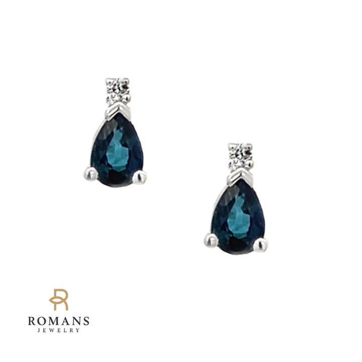 Classic and beautifully matched, these vibrant stud earrings feature pear shape sapphire gemstones wit diamonds accents on top. Set in 14K white gold four-prong settings with comfortable push-back posts. Their petite size makes them a great everyday jewelry option.
