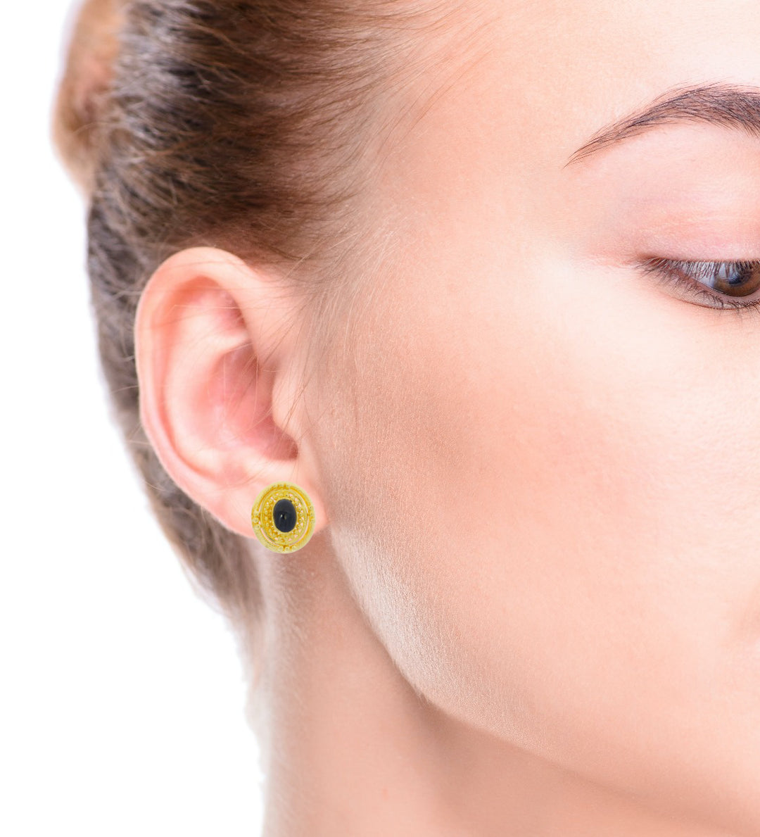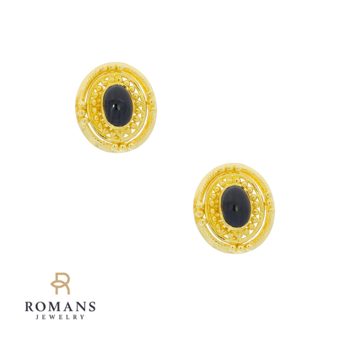 Classic and beautifully matched, these deep blue sapphire stud earrings features oval cabochon sapphire set in 18K yellow gold  with comfortable push-back posts. Their petite size makes them a great everyday jewelry option.