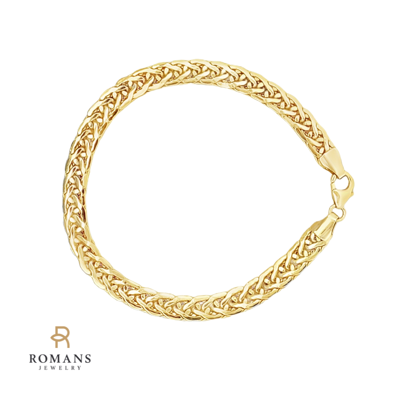 Go for the gold with this 14k yellow gold Italy bracelet designed with fancy wheat links connected braided together to create a balanced look made for everyday wear.