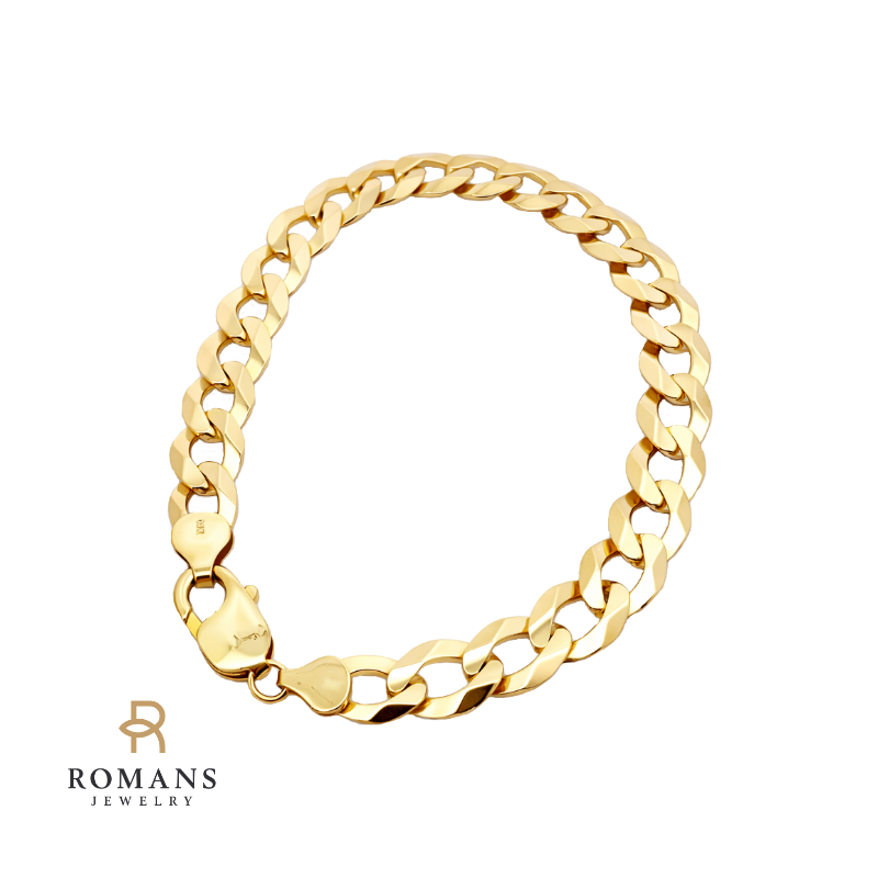 Flat Cuban Mens Bracelet 14K Yellow Gold