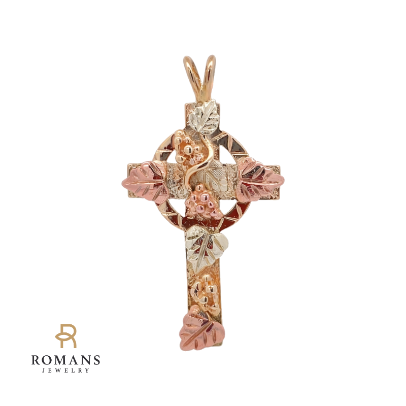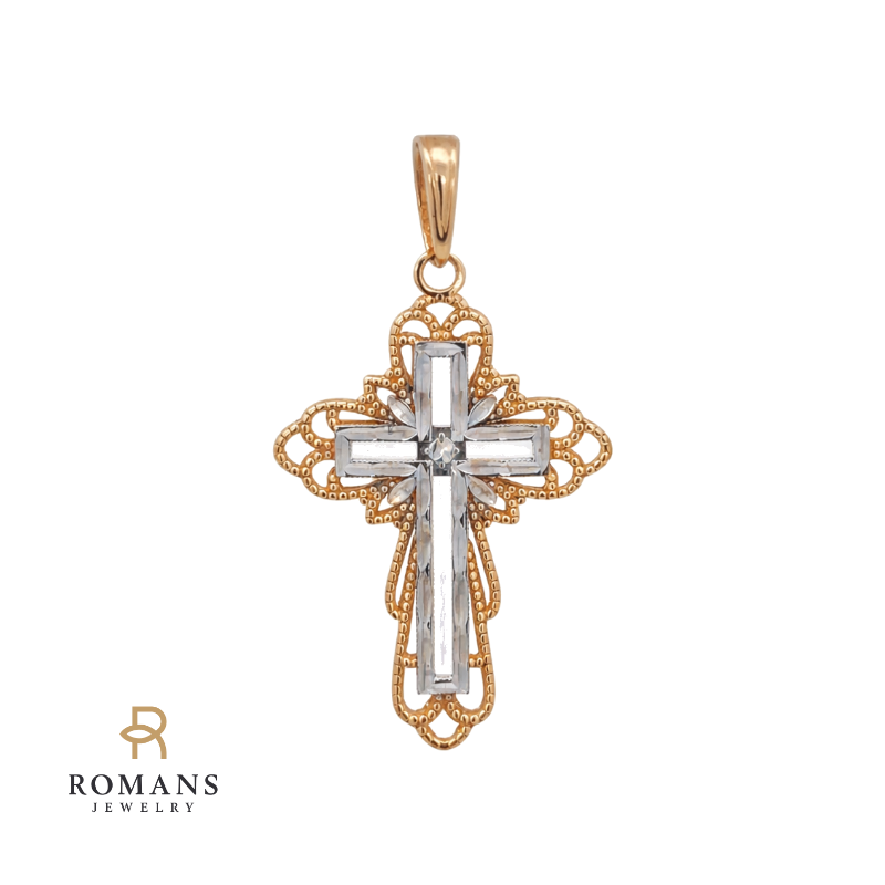Swirl Lace Trim Cross Pendant 14K Two Tone