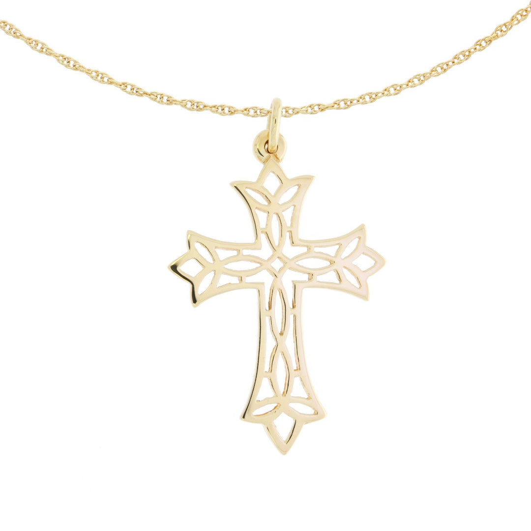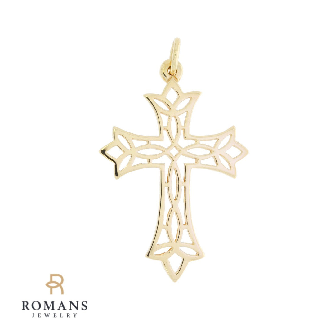 A meaningful symbol and a special pendant, this cross crafted in warm 14k yellow gold. This pendant makes a meaningful statement and a perfect gift.