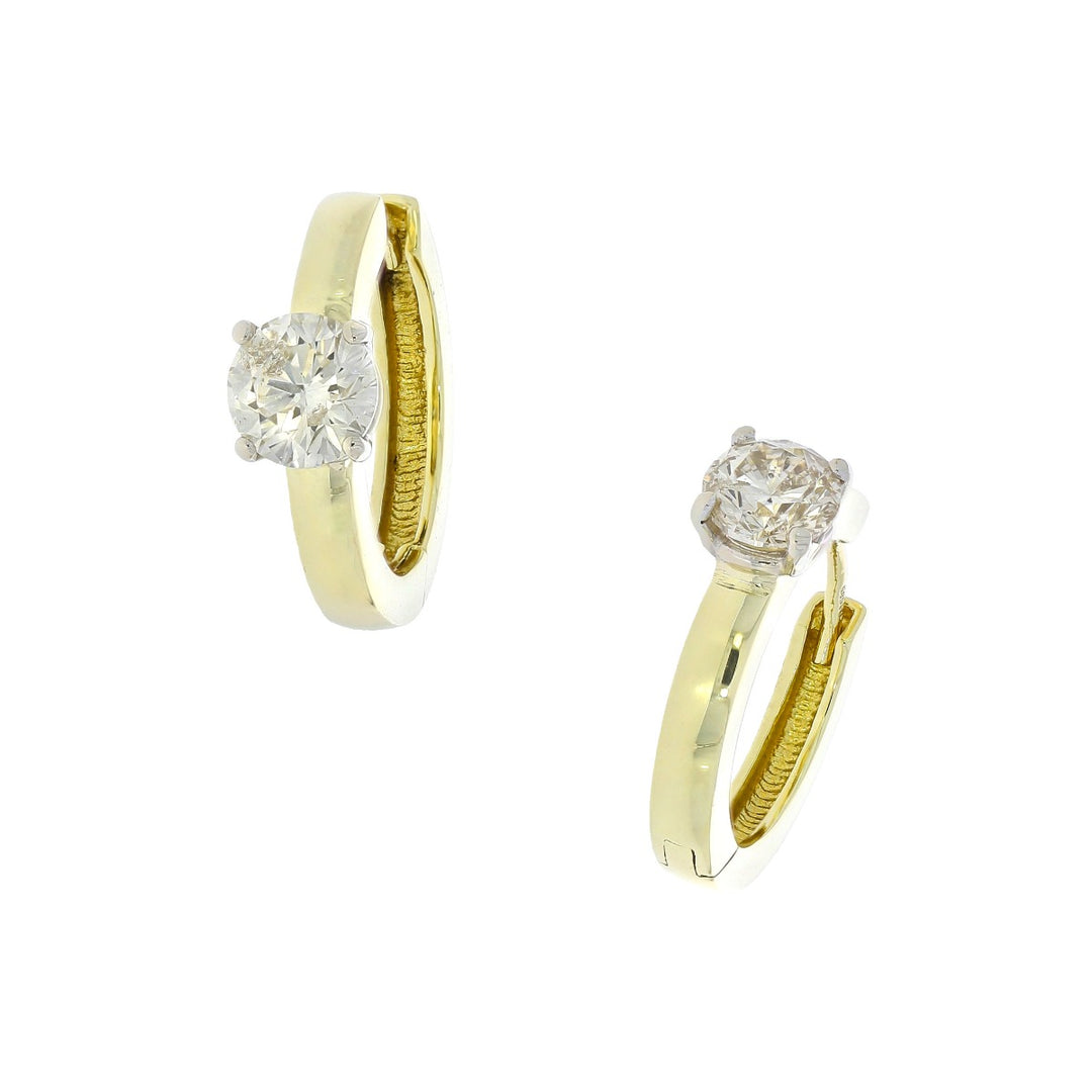 Solitaire Diamond Hoop Earrings 14K Two Tone Gold 1.50CTW