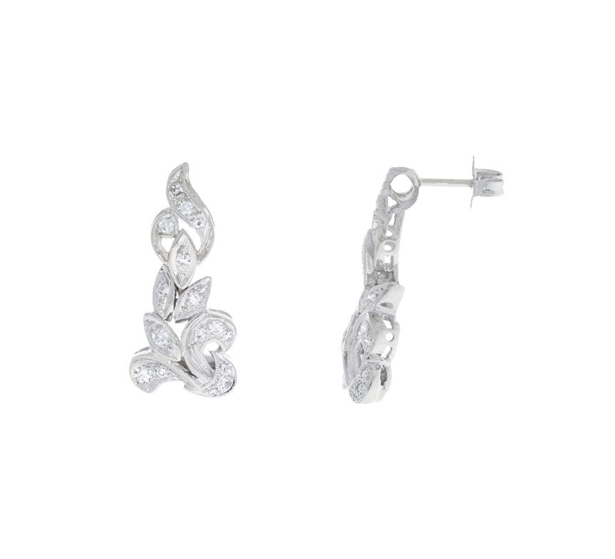 Vintage Diamond Filigree Earrings 14K White Gold .34CTW