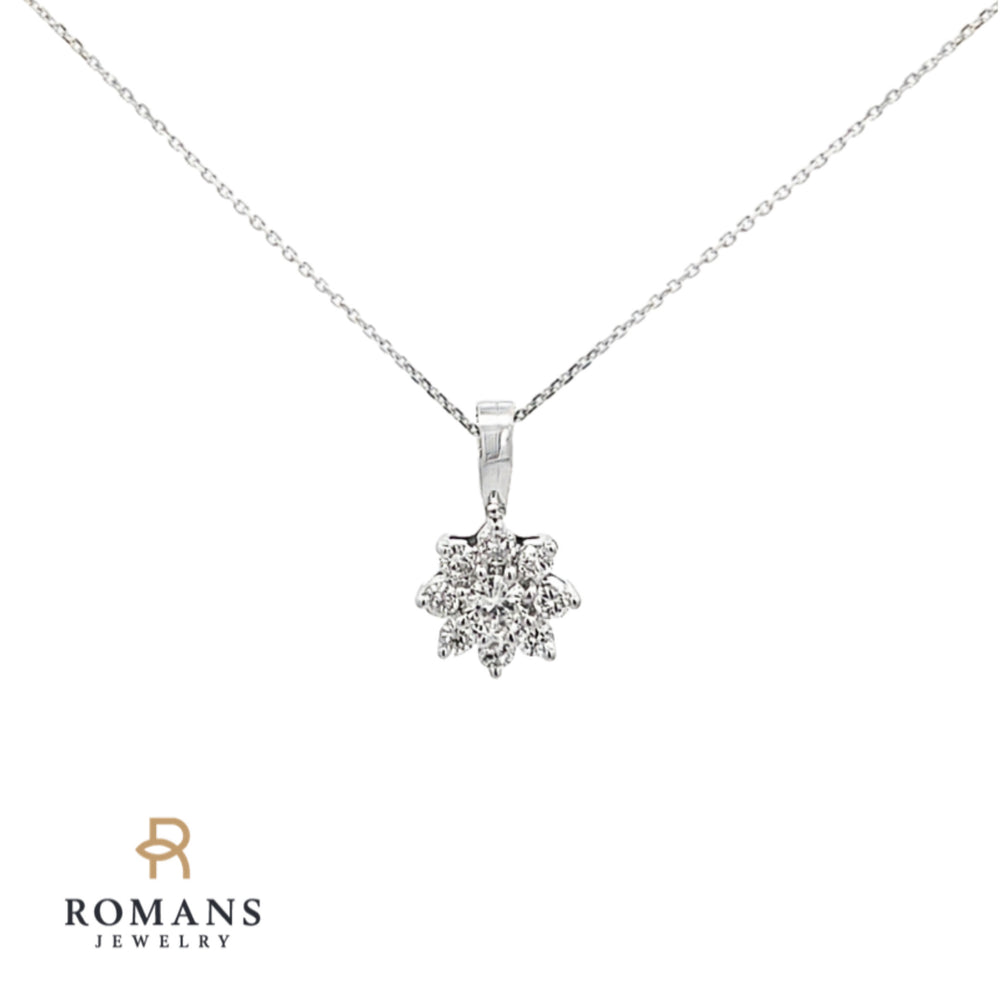 Round Diamond Pavé Cluster Necklace 14K White Gold 0.09CT