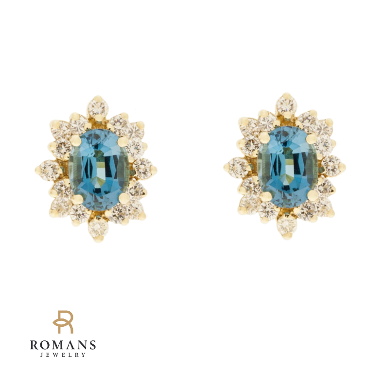 Blue Topaz Diamond Earrings 14K Yellow Gold 3CTW