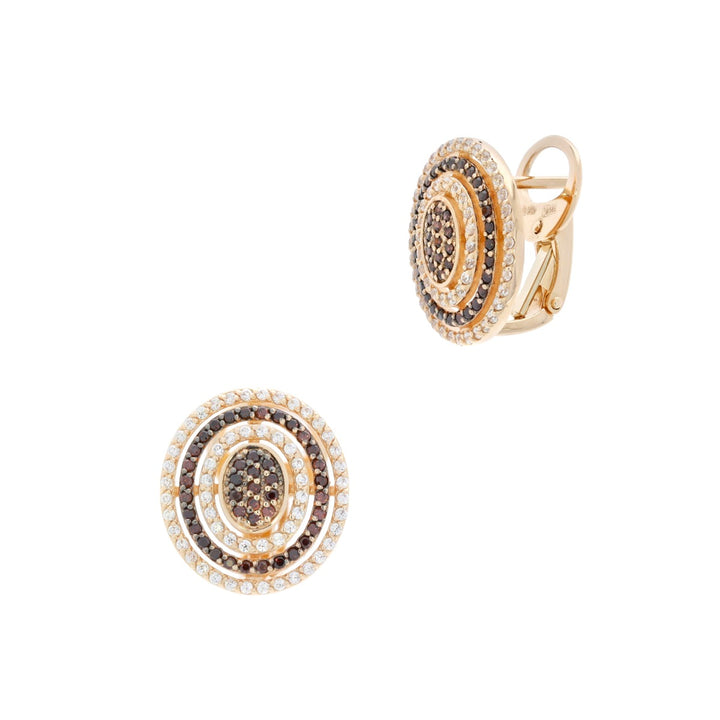 A glamorous addition to any chic outfit, these 14K rose gold cubic zirconia earrings shine brightly in round shape with brown and white cubic zirconia stones for a bold, eye-catching look.