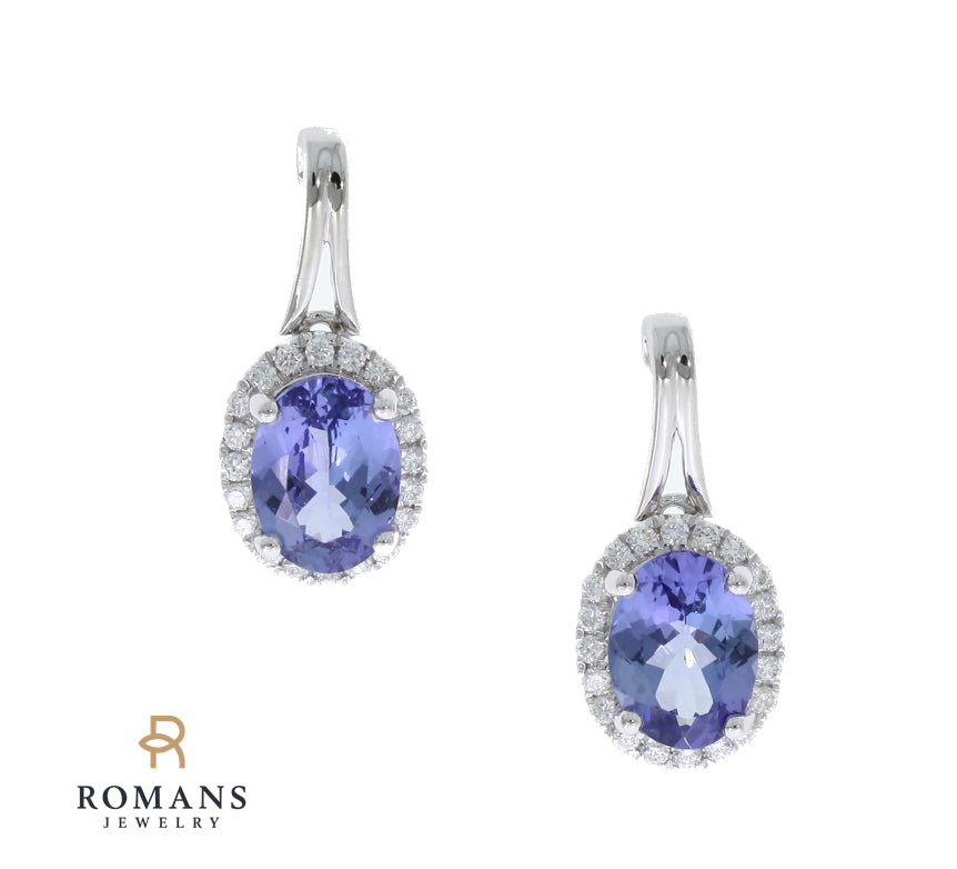 These bright tanzanite and diamond halo drop earrings are an excellent choice. Crafted in vibrant 14k white gold these gemstone earrings feature oval tanzanites surrounded by sparkling halos of micropavé diamonds. These drop earrings make them a great everyday jewelry option.
