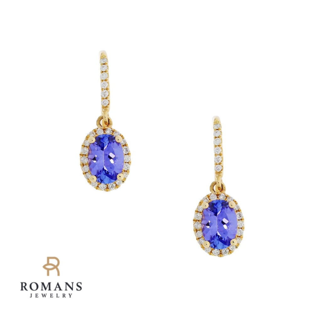 Tanzanite Diamond Halo Earrings 14K Yellow Gold
