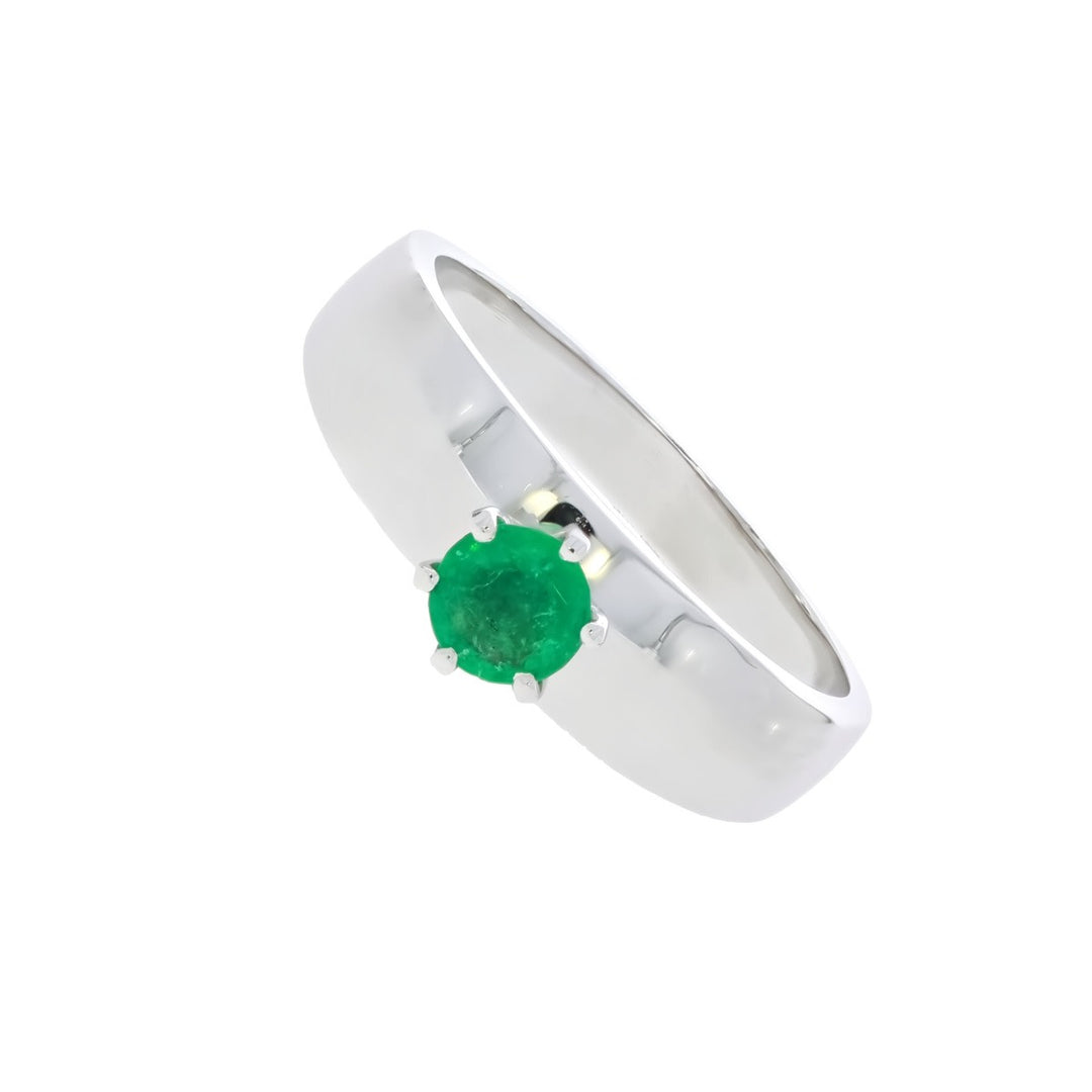 Emerald Solitaire Ring 14K White Gold .45 CT