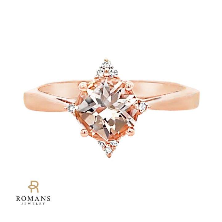 Morganite Diamond Ring 14K Rose Gold 1.12CT