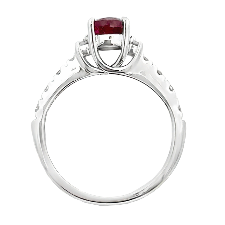 Oval Ruby Diamond Ring 14K White Gold .69CT