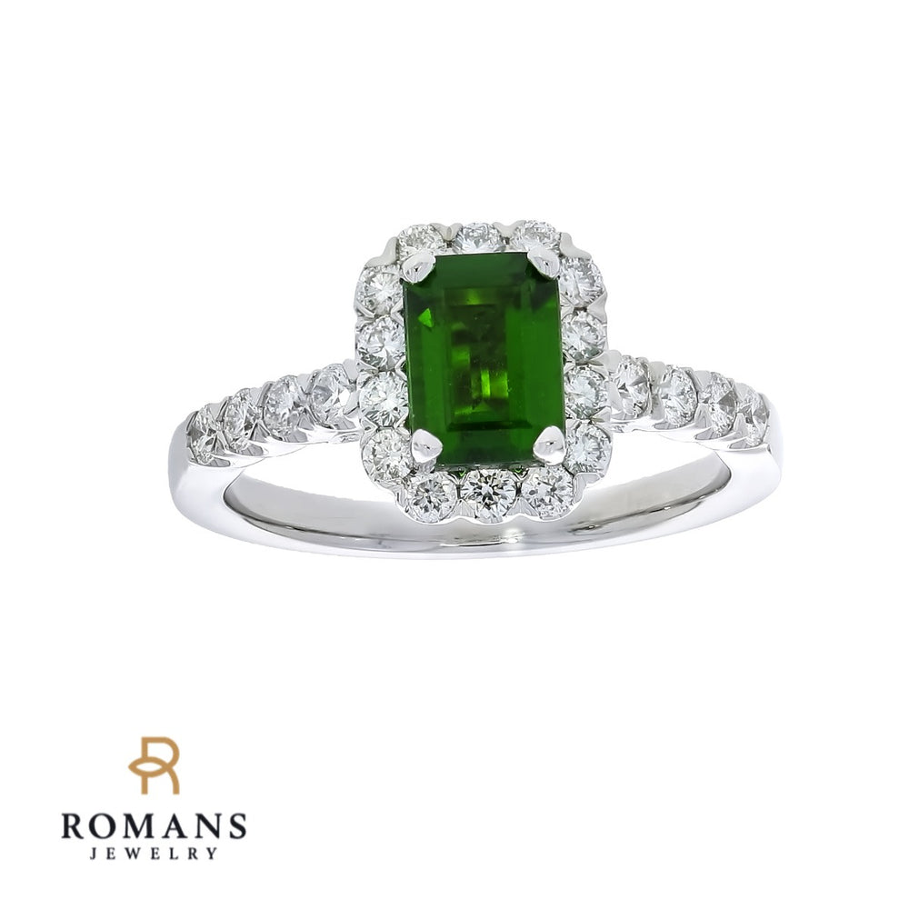 Tourmaline Diamond Halo Ring 14K White Gold 1.21 CT