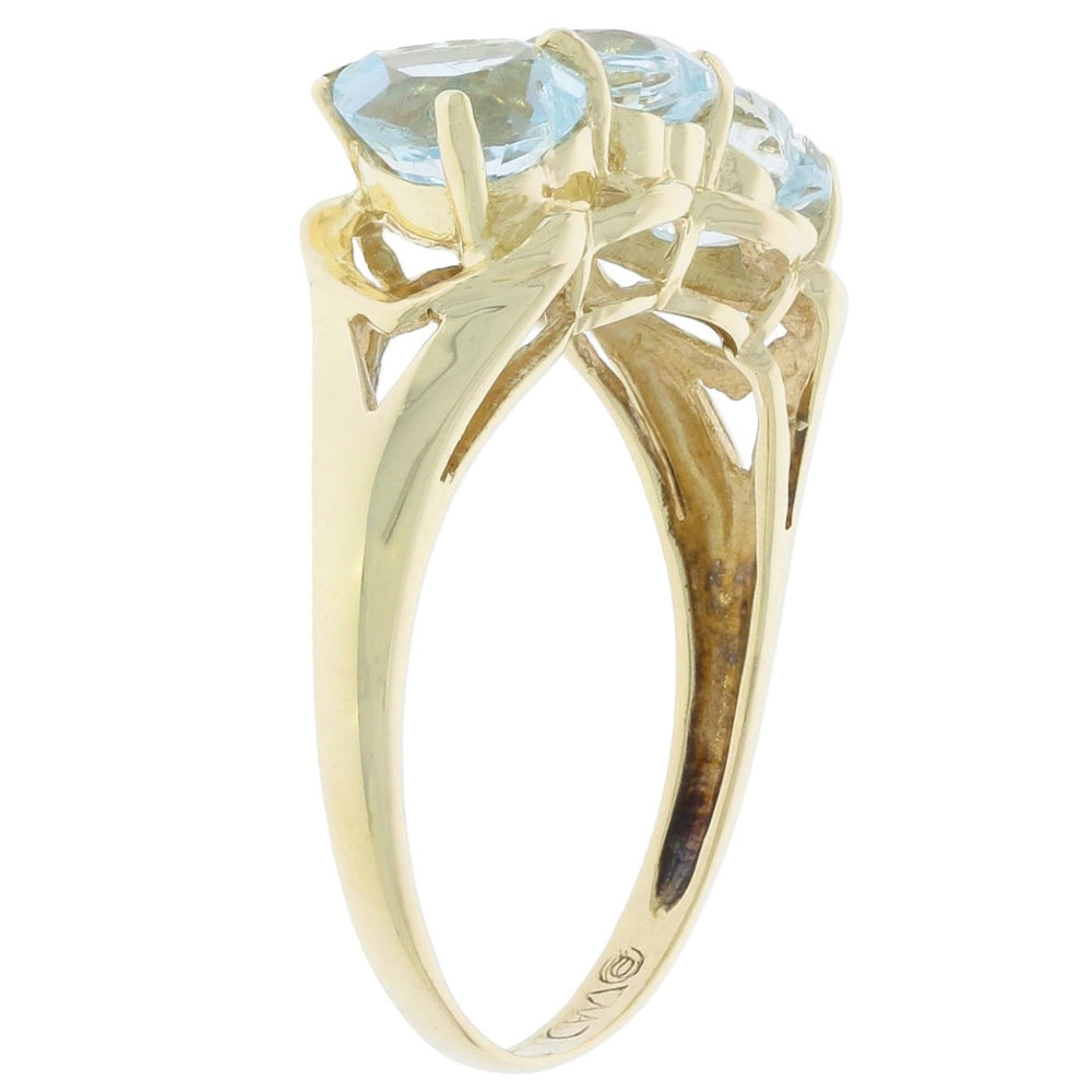 Aquamarine Three Stone Heart Ring 10K Yellow Gold 1.65CTW