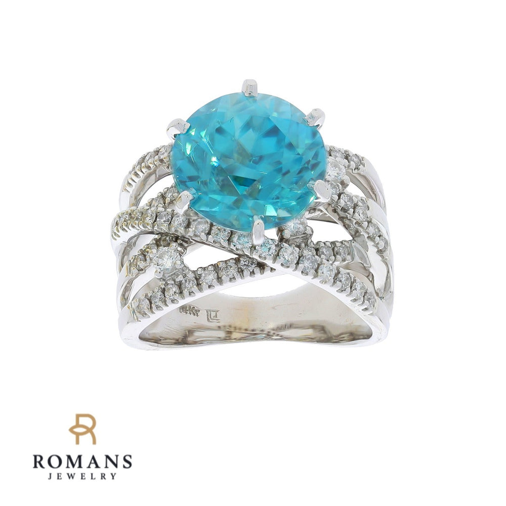Blue Zircon Diamond Ring 14K White Gold 9.52CT