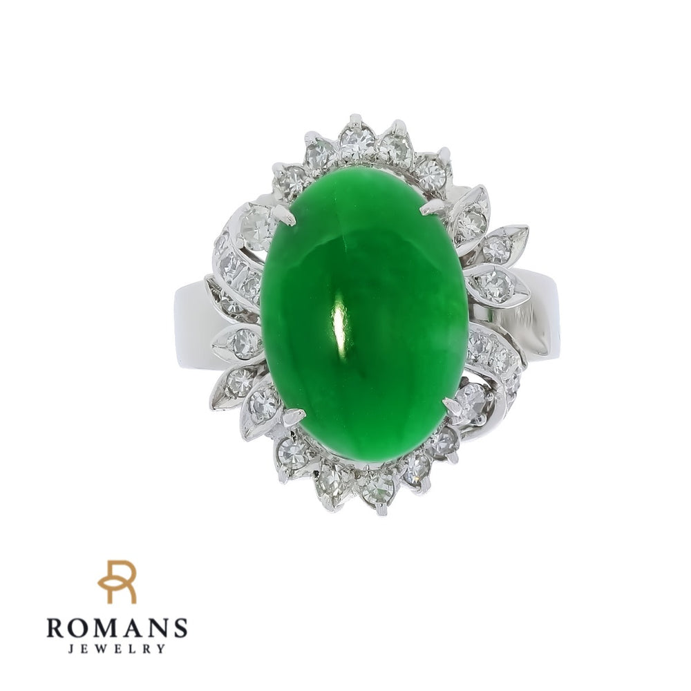 Jade Jadeite Natural Diamond Ring 18K White Gold