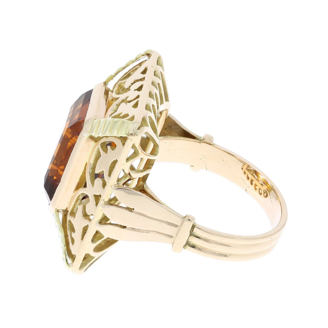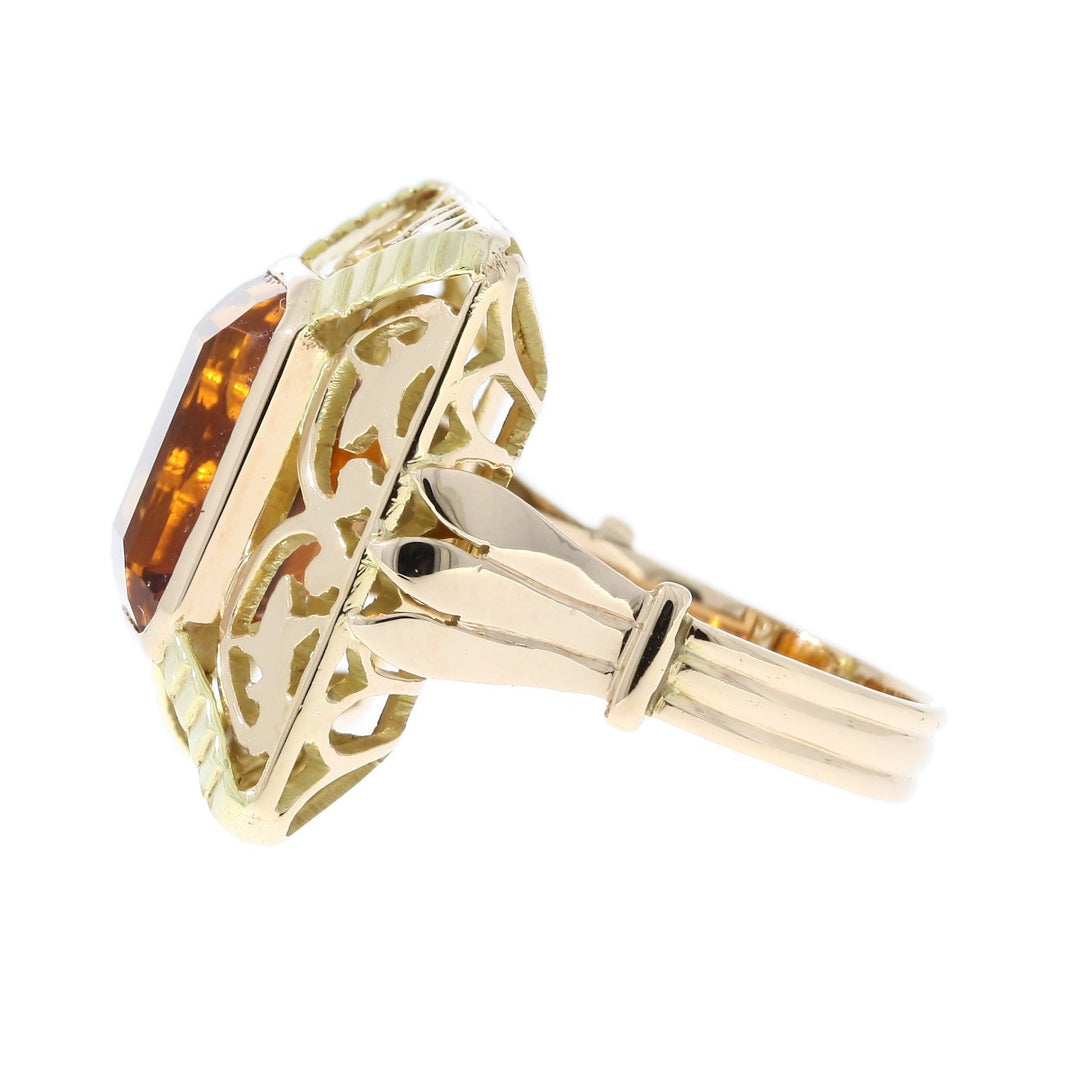Madeira Citrine Art Nouveau Ring 14K Two Tone 6.57 CT