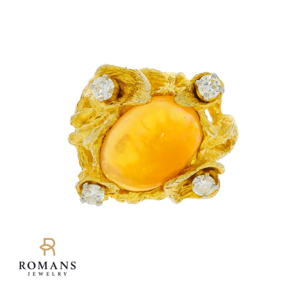 Mexican Fire Opal Diamond Ring 14K Yellow Gold 2.25 CT