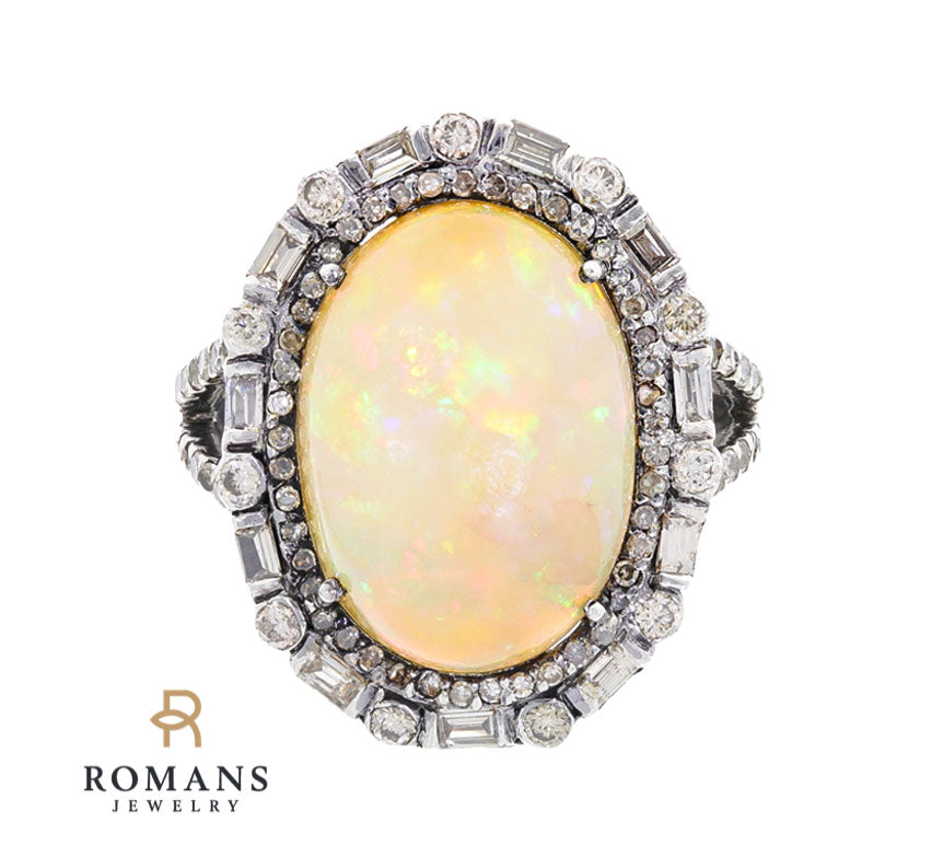 Opal Diamond Ring Sterling Silver 12.50CT