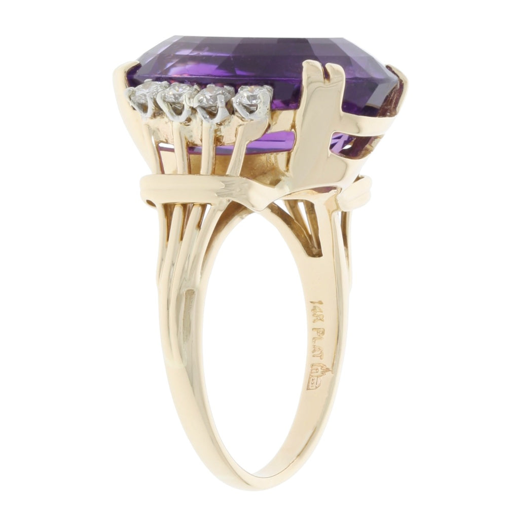 Oval Amethyst Diamond Ring 14K Yellow Gold 11.60CT