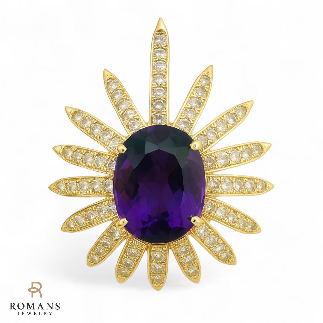 Luxury Garnet & Diamond Halo Gemstone Pendant 14K Yellow Gold 2.27CT