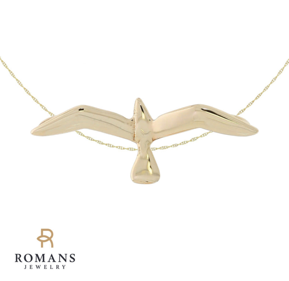 She'll fall in love with the laid-back style of this charming necklace. Created in warm 14K yellow gold this whimsical design features a sculpted bird. Polished to a bright shine, this pendant will look beautiful with any chain of your choosing.