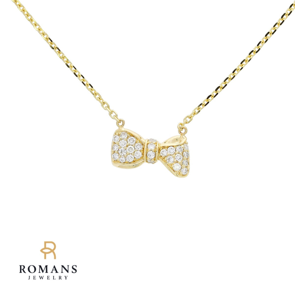 Bow Diamond Pendant Necklace 14K Yellow Gold .10CTW