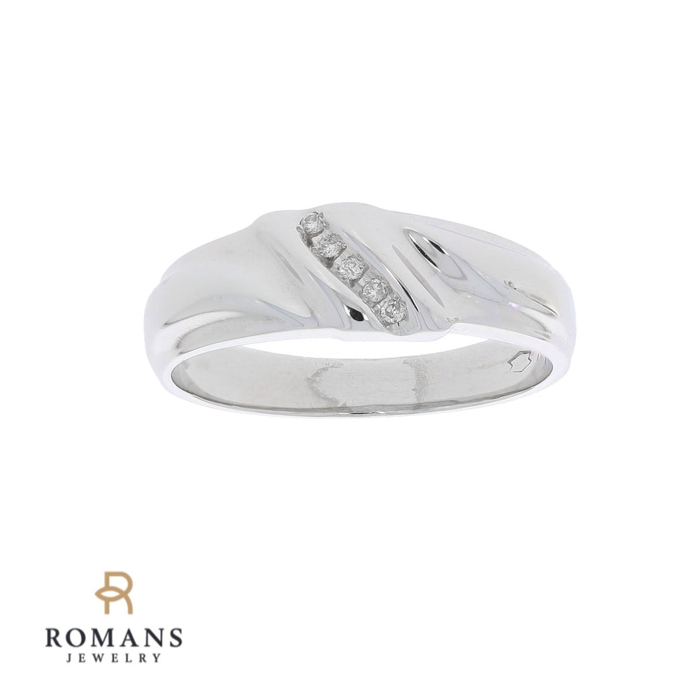 This well crafted 10k white gold men's ring with 5 round diamonds will make a great addition to any collection.