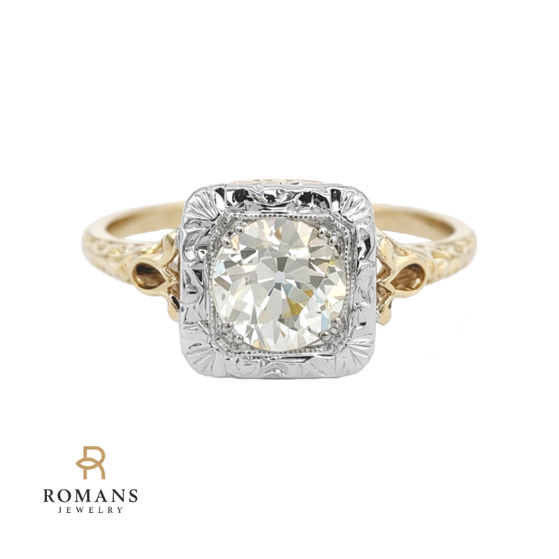 Old European Diamond Filigree Engagement Ring 14K Two Tone 1.40CT