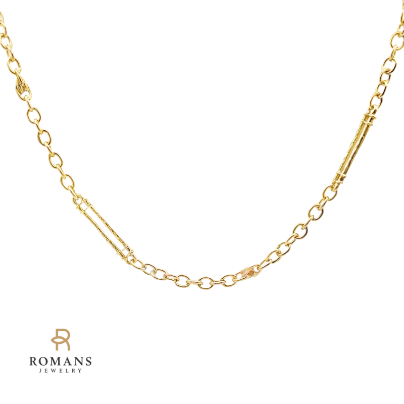 Create added interest with this beautiful 9k yellow gold fancy link chain, is the perfect everyday piece. Wear it on its own, layered with other necklaces, or paired with your favorite pendant.