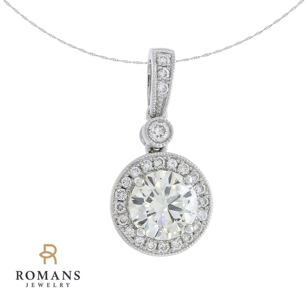 Round Diamond Halo Pendant 14K White Gold .98CTW