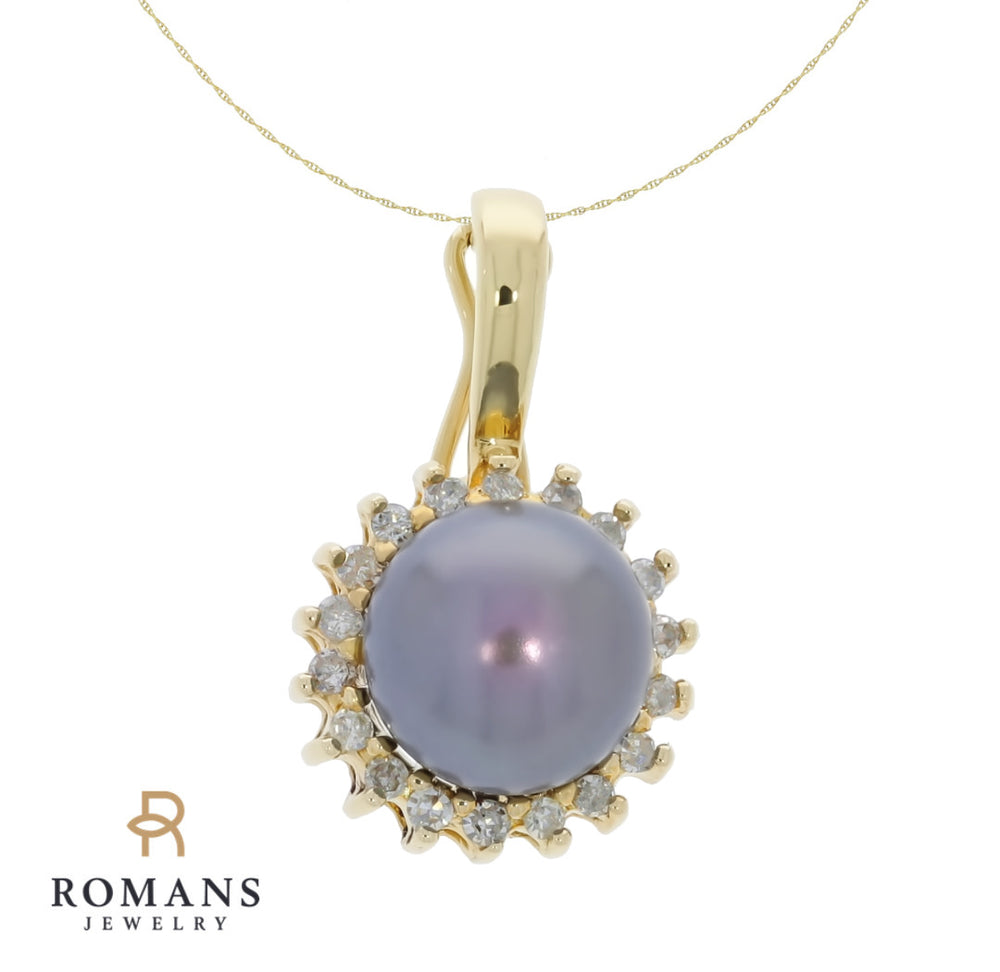 Cultured Diamond Pearl Pendant 14K Yellow Gold