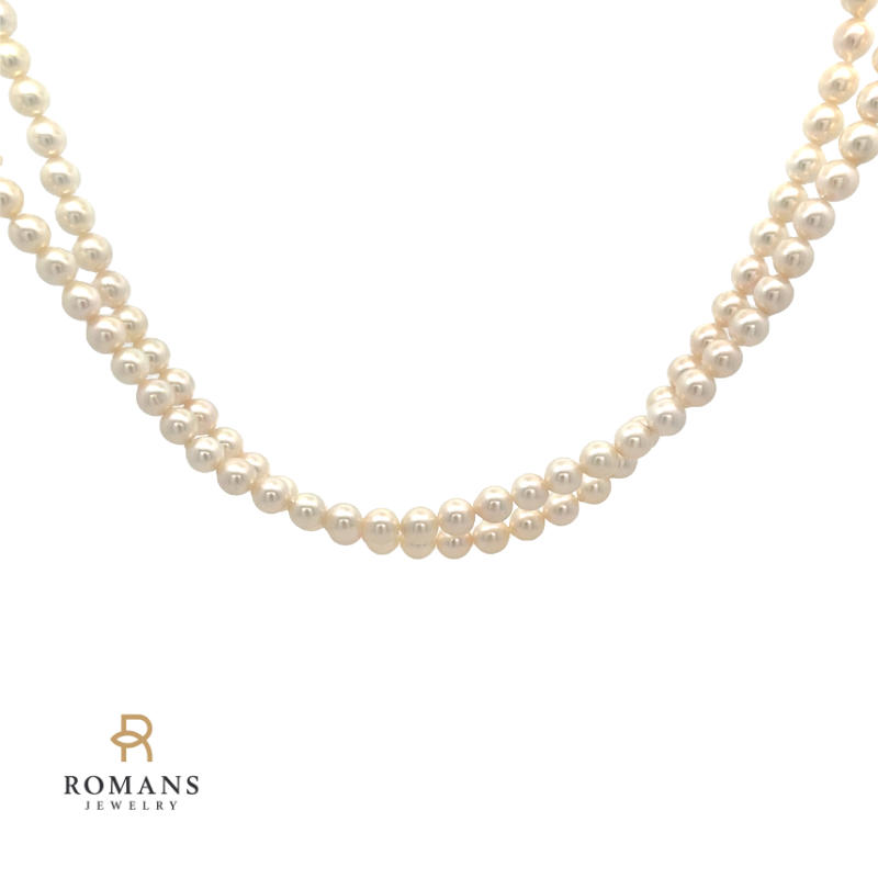 Akoya Double Pearl Strand Necklace 14K Yellow Gold