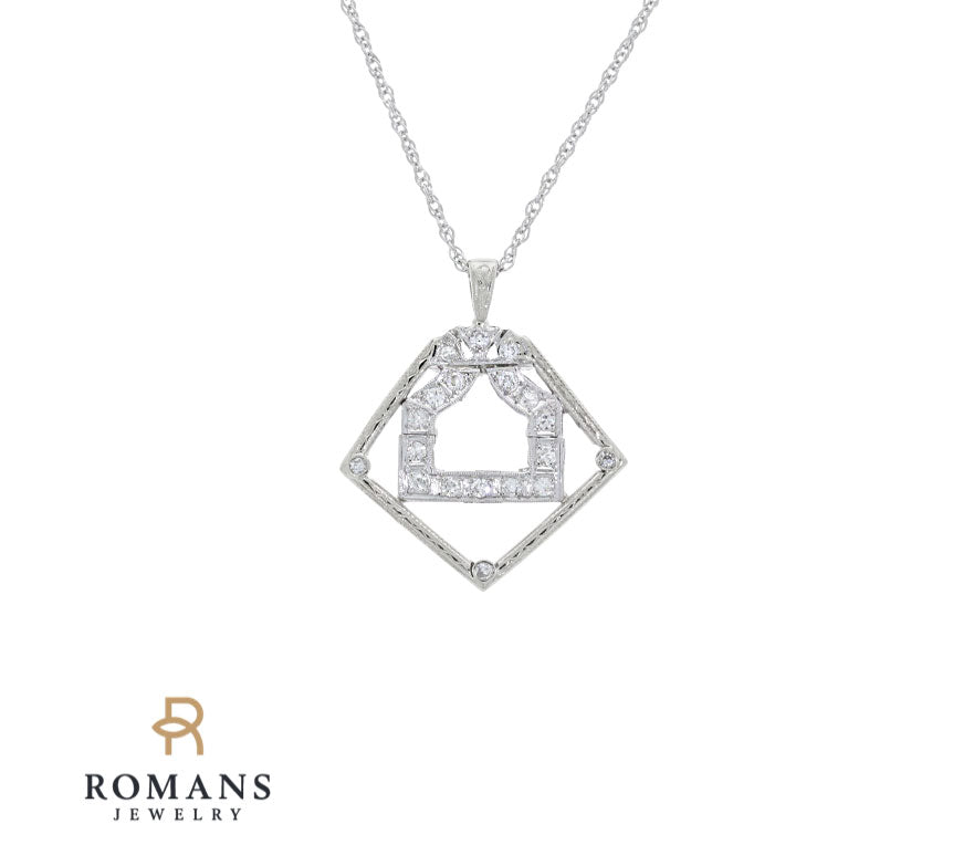 Geometric Diamond Art Deco Pendant 14K White Gold .32CTW