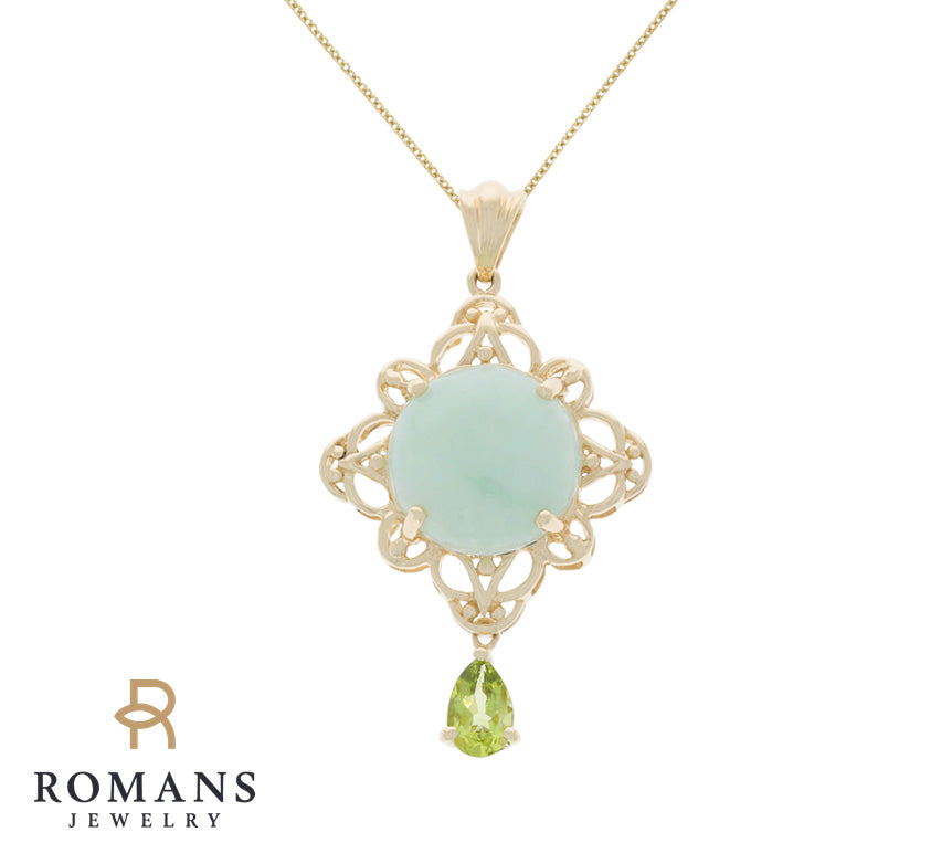 Jade & Diamond Brooch Pendant 18K Yellow Gold