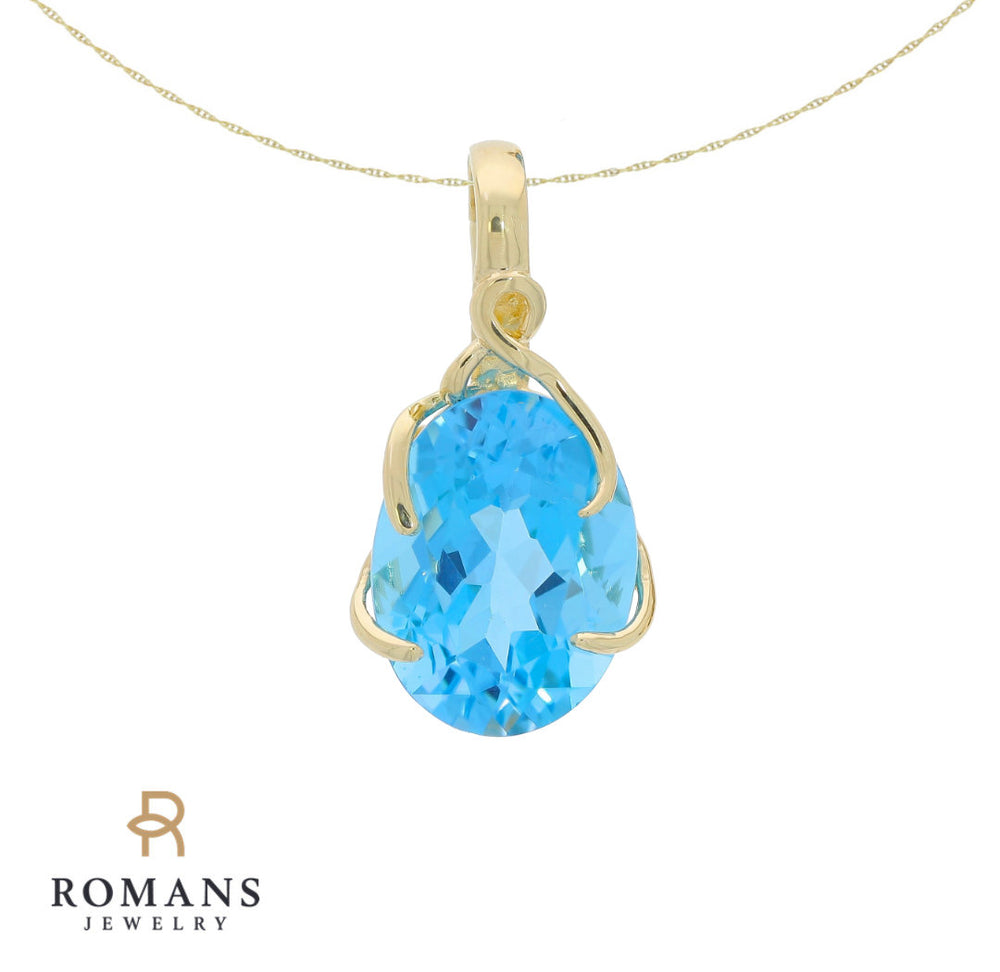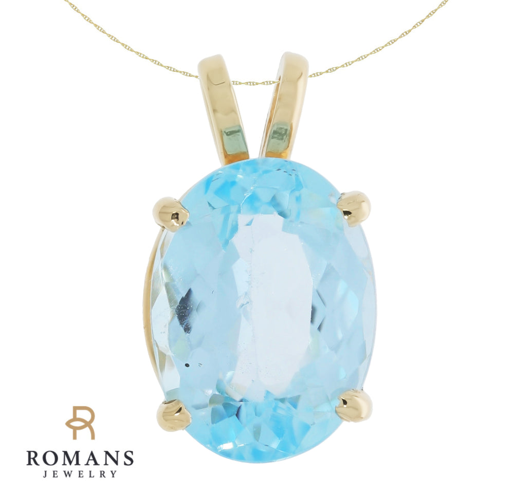 Swiss Blue Topaz Pendant 14K Yellow Gold 14.98CT