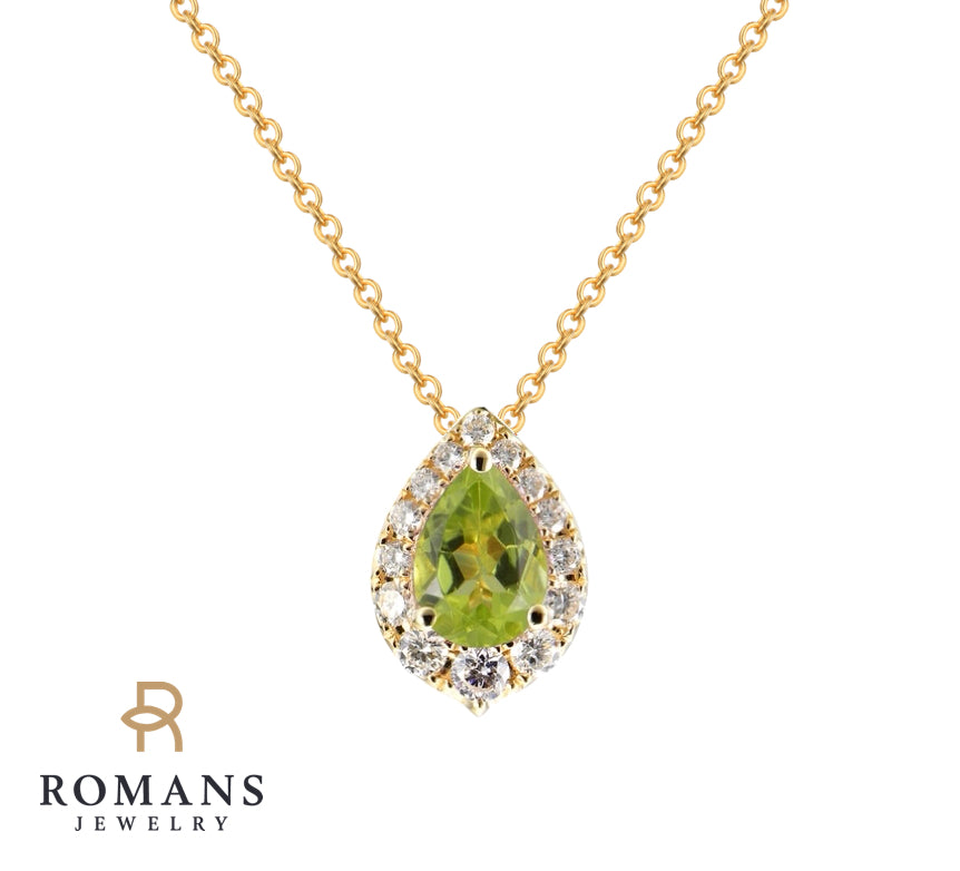Peridot Diamond Halo Pendant 14K Yellow Gold
