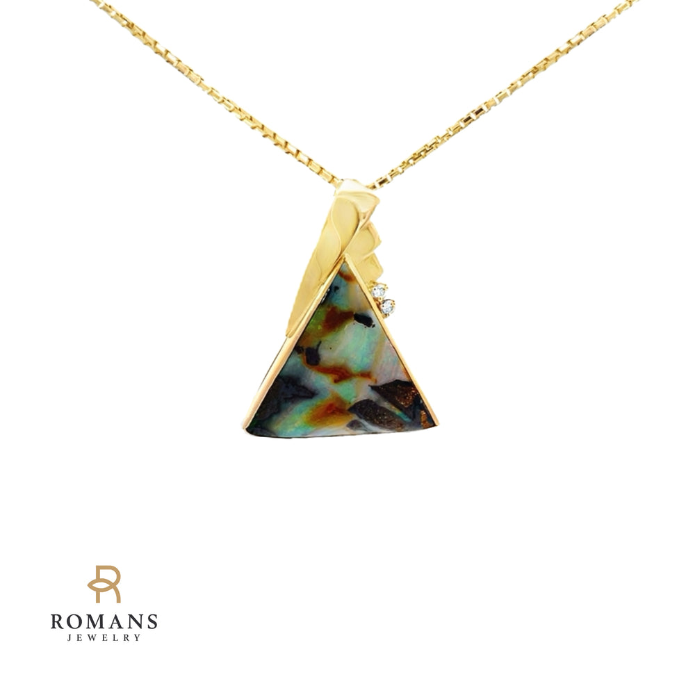 Boulder Opal Diamond Pendant 14K Yellow Gold