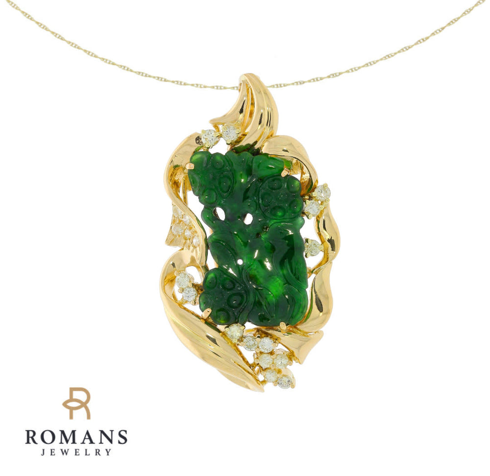 Jadeite Jade & Diamond Brooch Pendant 18K Yellow Gold