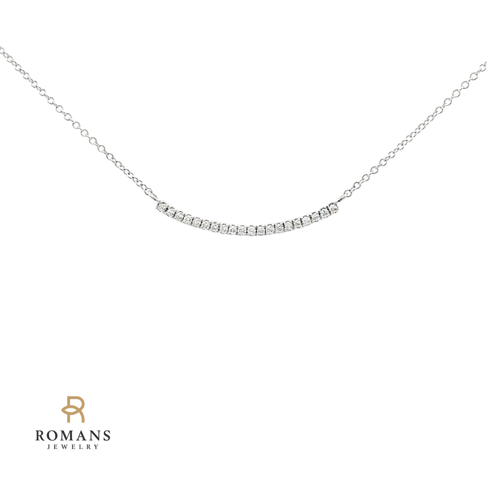 Diamond Slim Curved Bar Necklace 14K White Gold .10CT
