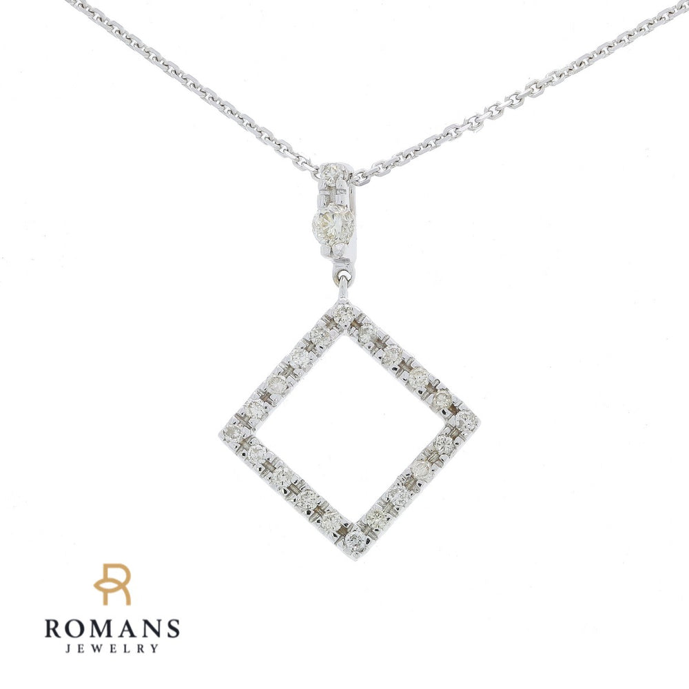 This square-shaped 18K white gold pendant showcases sparkling diamonds for a delicate and charming look.