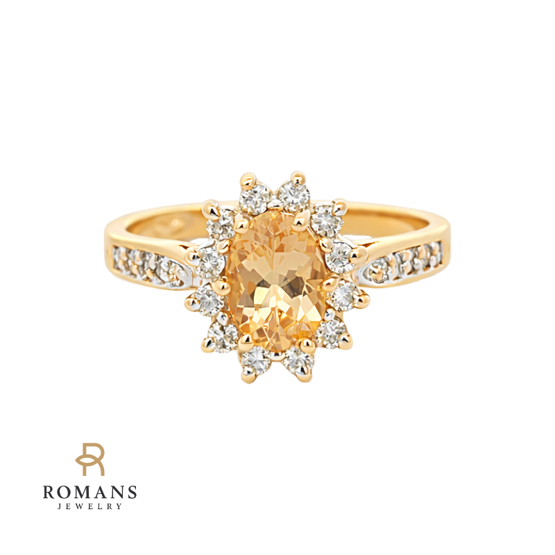 Citrine Diamond Halo Flower Ring 14K Yellow Gold .62CT