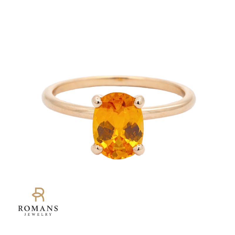 An earthy, oval cut orange sapphire glows warmly at the center of this elegant solitaire ring. Set in rich 14K yellow gold, the clean design lets the 1.51 carat gemstone take the spotlight perfect for someone who loves understated, natural color.