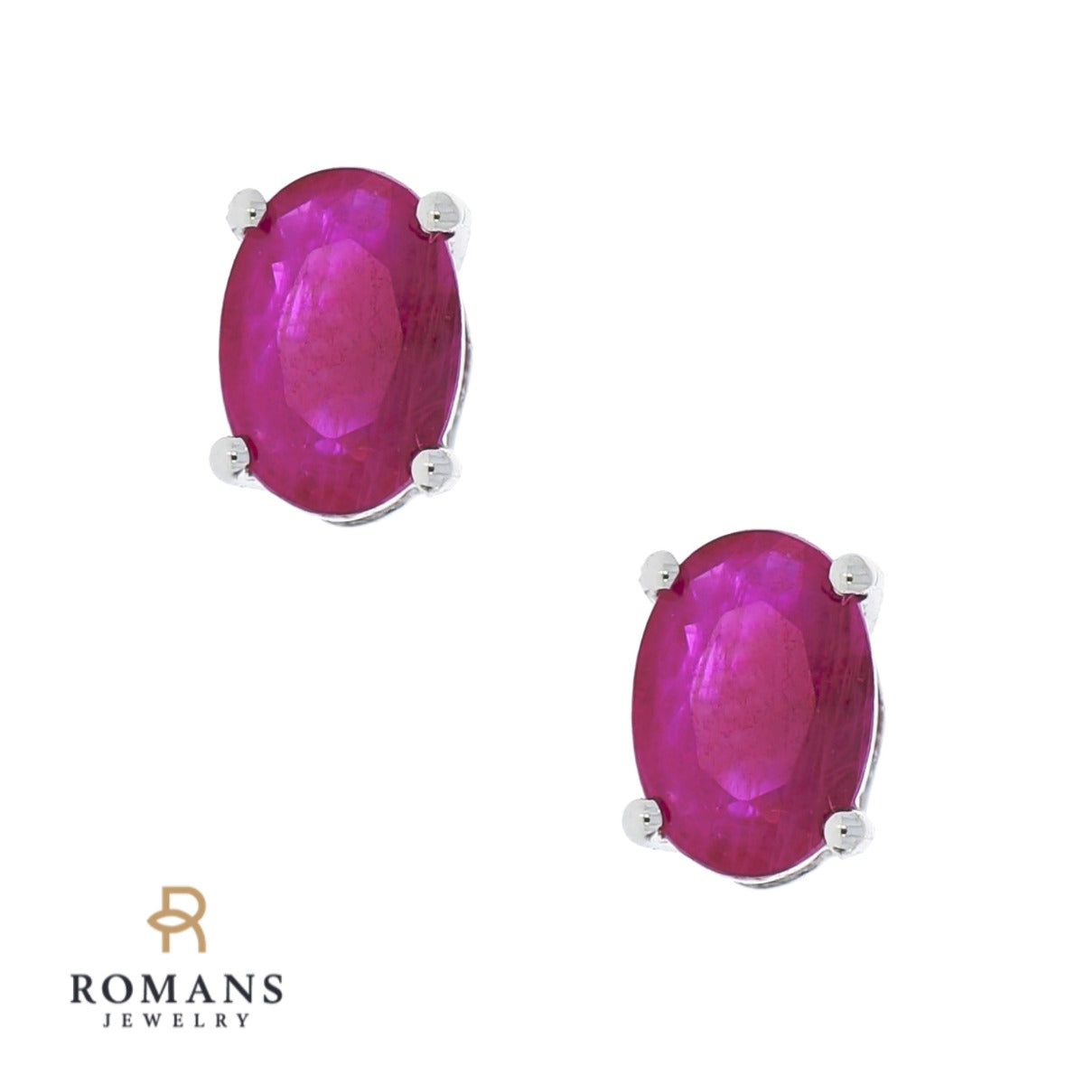 Oval Ruby Stud Earrings 14K White Gold 1.16CTW