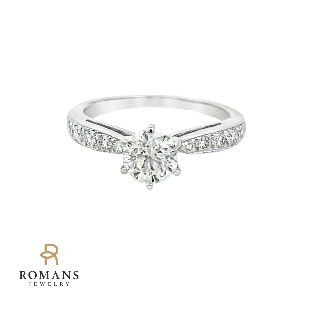 Brilliant Cut Round Diamond Engagement Ring 18K White Gold 0.73CT